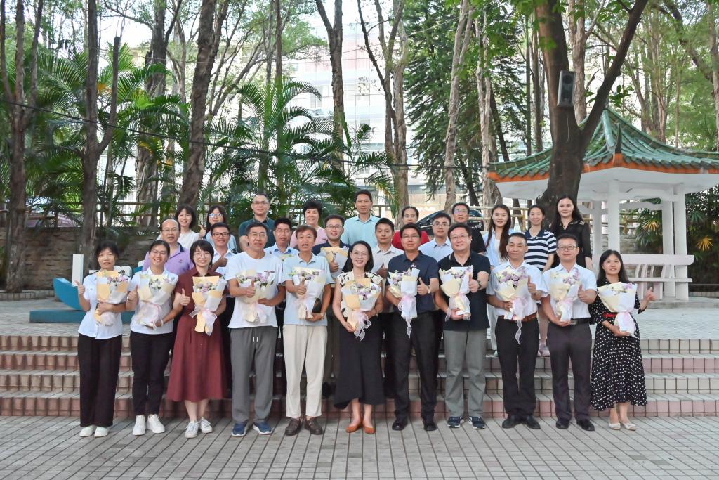 座谈会后,陶韶菁向与会教师代表赠送鲜花表达节日的祝贺。全体参会人员合影留念。